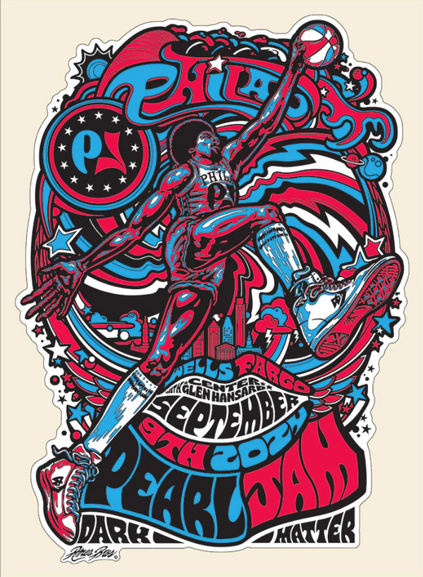 Dimensions: 17.5" X 24"Medium: 4 color screen print on speckletone cream paper, b/w one color back print with security sticker, to commemorate Pearl Jam's September 9, 2024 show in Philadelphia. Description: SOLD OUT Limited Edition of 130. Signed and numbered...