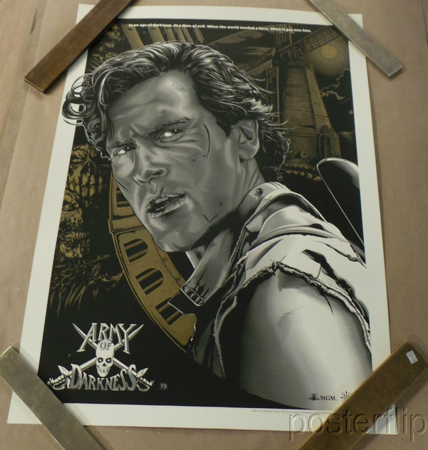 Title: Army of Darkness Gold Variant Poster artist: Jeff BoyesEdition: Edition of 50 Signed: No Numbered: No Type: ScreenprintedSize: 18" x 24"Notes: Inspired by the popular cult film. Released by Skuzzles in 2014 in limited edition of 50 prints. Print is stored flat in...