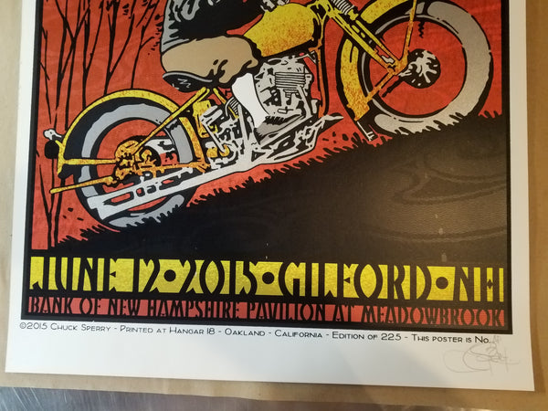 Title: The Avett Brothers – Gilford, NH 2015Poster artist: Chuck SperryEdition: Limited Edition of 225, Signed and Numbered by the artistType: Screen print Size: 21" x 32"Location: Gilford, NHVenue: Bank of New Hampshire Pavilion At MeadowbrookNotes: 6-color Screen Print. Ready...