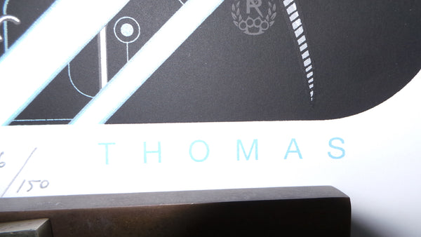 Title: Daft Punk - ThomasPoster artist: Rhys Cooper Edition: 2015 Limited Edition of 150, Signed and NumberedType: Screen PrintSize: 12" x 36"Notes: Originally sold through Studio Seppuku in 2015. Following purchase, prints are rolled in kraft paper and shipped in...