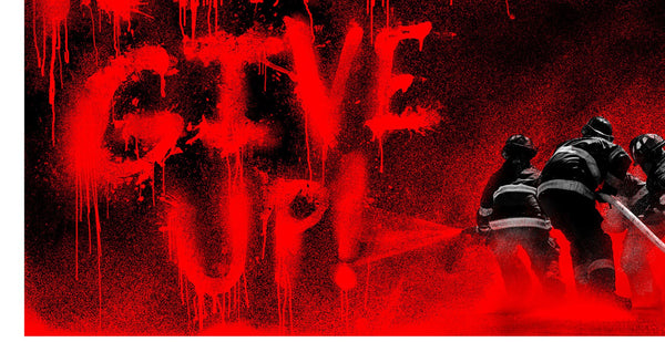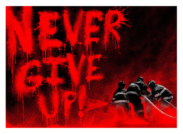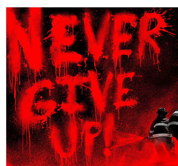 Title: Never Give Up! (2018 RED EDITION )Artist: Mr. BrainwashEdition: Limited RED Edition screenprint on hand torn archival art paper of only 40 copies per color. Signed, numbered and thumb printed on the back.Type: Screenprint poster on hand torn archival...