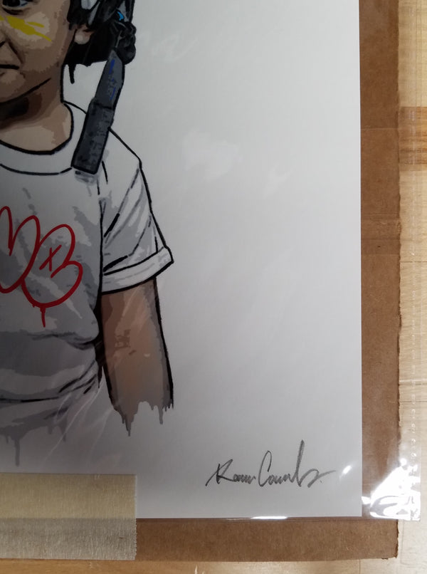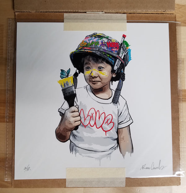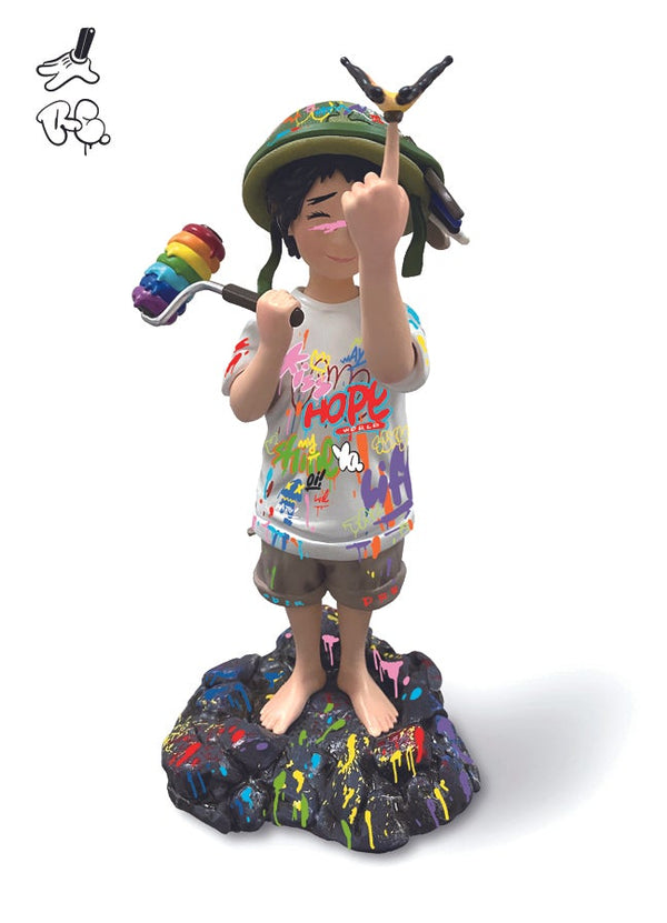 Title: Roamcouch "Bomber Boy" (sculpture and print)Artist: Roamcouch x Silent Stage GalleryEdition: 2022 Resin Sculpture + Mini Print xx/10, signed and numbered by the artistSize: Sculpture - 9" tallMini Print - 8" x 8 inches"