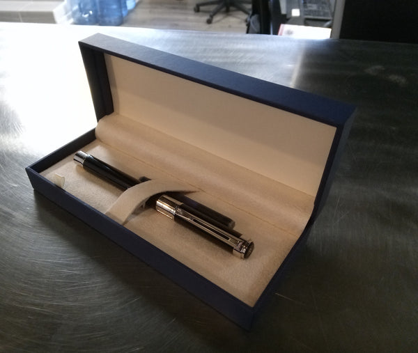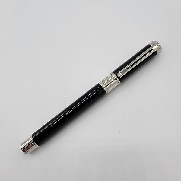 Features a straightforward cylindrical design with a weighted structure, designed to provide a comfortable and controlled writing experience. This particular pen is produced with a black lacquer finish and chrome plated highlights. Cap can be removed and placed on to...